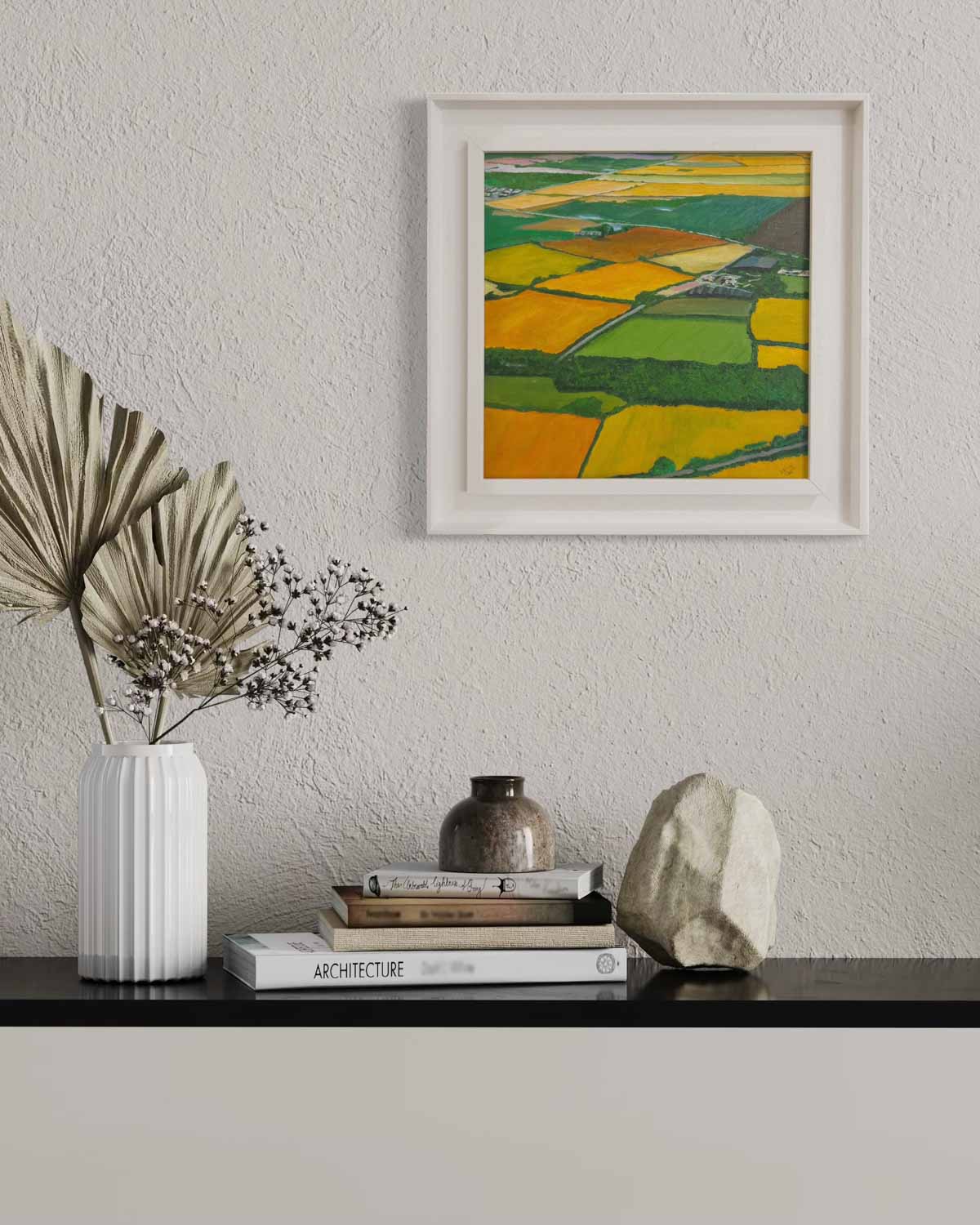 Paintings in the series ‘Over The Fields And Far Away’ are depicted to evoke a sense of calm and relaxation.