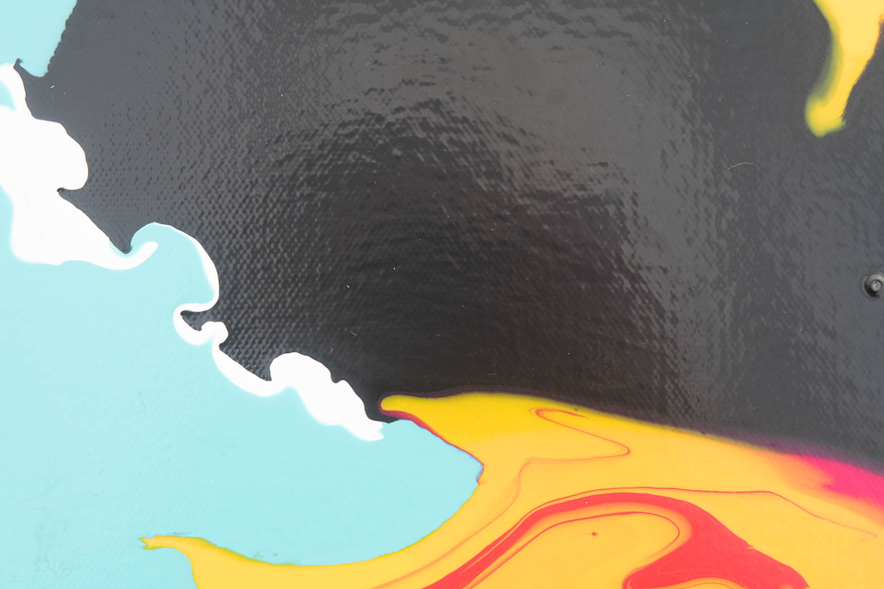 The process used to create this painting relies upon a variety of responses.From the fluidity of the paint and and how it moves and flows to the temperature in the studio and how rapidly the paint mix dries.